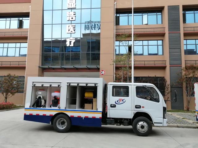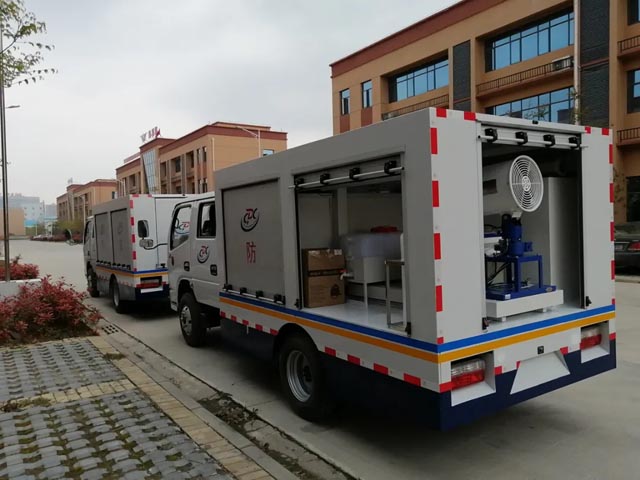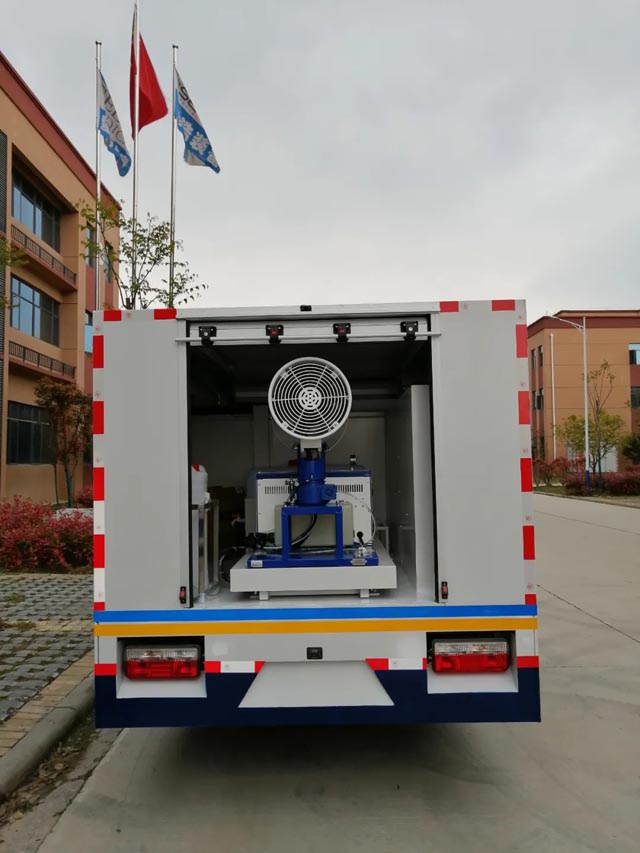 用于消殺室外環(huán)境的細(xì)菌,病毒,和蚊蠅等媒介昆蟲。車內(nèi)配置超低容量噴霧機(jī)、常量噴霧機(jī)等設(shè)備。可消毒處理面積:>500㎡可連續(xù)反復(fù)充裝;殺蟲處理面積:2500—100000㎡。