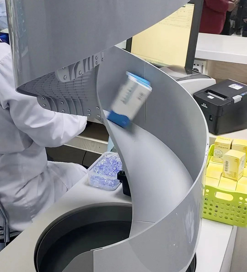 隨著人工智能的發(fā)展,以質(zhì)量為核心、以病人為中心”的服務(wù)理念。提高醫(yī)療服務(wù)質(zhì)量,改善群眾就醫(yī)體驗(yàn),醫(yī)院都紛紛上線智慧藥房。發(fā)藥機(jī)投入使用讓病患享受到更加便捷的藥學(xué)服務(wù)。發(fā)藥機(jī)從外形看,就像是大型自動(dòng)售貨機(jī),解決了人工發(fā)藥取藥調(diào)配差錯(cuò)率高、沒有過程記錄環(huán)節(jié)、患者等待時(shí)間長(zhǎng)等缺點(diǎn),緩解了高峰期配藥壓力。發(fā)藥機(jī)系統(tǒng)還會(huì)自動(dòng)鎖定過期藥品功能強(qiáng)大,發(fā)藥機(jī)內(nèi)部溫度恒溫,有藥品缺藥的提示功能,系統(tǒng)就會(huì)按照處方的內(nèi)容自動(dòng)調(diào)配藥品,可以及時(shí)的補(bǔ)充藥品。實(shí)現(xiàn)實(shí)時(shí)監(jiān)控。這樣讓病患可以得到用藥需求。藥品充足就不會(huì)讓病人久等。最后把調(diào)配好的藥品通過傳輸帶輸送到發(fā)藥窗口。提高了效率將簡(jiǎn)單繁重機(jī)械重復(fù)式的工作交給智能發(fā)藥機(jī)完成。配合具有108存儲(chǔ)位的智能調(diào)配機(jī)和78種藥品拆零的分包機(jī),系統(tǒng)全天能達(dá)到6000張?zhí)幏教幚砟芰?,確實(shí)能緩解高峰期配藥壓力。真正實(shí)現(xiàn)了藥品調(diào)配的全流程智能化操作。為患者的用藥安全提供了有力的保障。