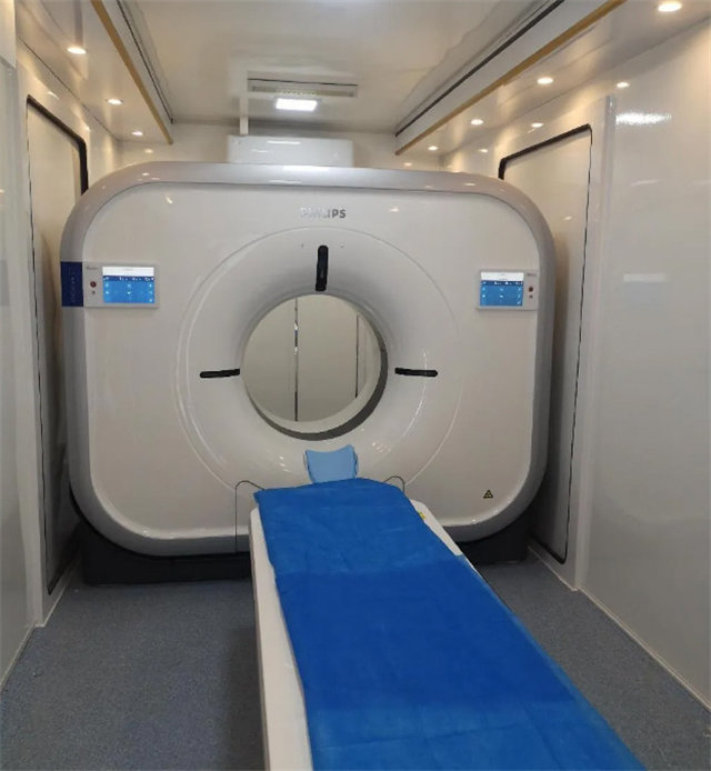 提升醫(yī)療服務(wù)質(zhì)量,醫(yī)院改善體檢就醫(yī)體驗。移動CT體檢車投入使用,采用了移動CT高端設(shè)備,精準體檢檢查,移動服務(wù)。這個相當是個移動的CT檢查室。可以開到需要的地方進行CT檢查,大大緩解醫(yī)院壓力,特別是可以解決檢查人數(shù)多,等待時間長的問題。移動機動性可以深入到各個地方,開展義診,科普,檢查等醫(yī)療檢查服務(wù)。讓大家在附近就可以享受到高端的CT檢查。
