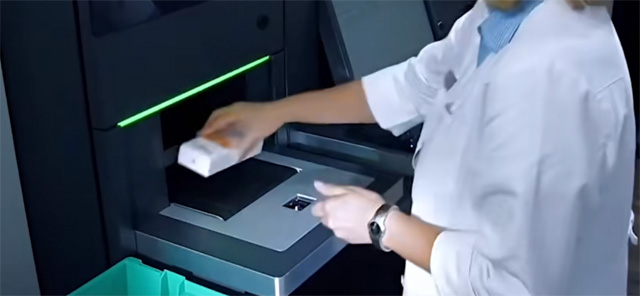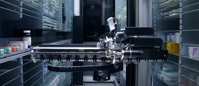 發(fā)藥機(jī)最快可以8秒完成配藥。高峰時(shí)候可以2秒發(fā)出一盒藥。一張?zhí)幏揭?盒藥品計(jì)算只需要8-12秒就可以配齊。大大的提高了發(fā)藥效率。發(fā)藥機(jī)還有自動(dòng)鎖定功能,還可自動(dòng)識別過期的藥品。過期藥品將不予發(fā)放,當(dāng)缺少部分藥品時(shí)候,后臺(tái)將藥品傳輸?shù)胶笈_(tái)藥劑師人工添加好后再傳輸?shù)角芭_(tái)。很多人講這個(gè)不就是一個(gè)機(jī)械臂嗎?可以進(jìn)行掃描取貨??匆暫醪浑y,其實(shí)還是有很高的技術(shù)含量的。