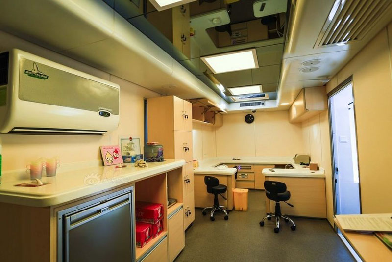 獻血房車里面必須配備消毒設備比如醫(yī)用空氣消毒機等,保證獻血環(huán)境安全。此外,每天獻血房車衛(wèi)生的打掃,一些器材的配備都要滿足一人一用比如說針頭之類的。其次,溫馨舒適的環(huán)境會讓獻血的人能夠充分放松。如今的獻血房車都會配備冷暖空調、液晶電視、冰箱等設備,每個去獻血的人都能感受到家一般的溫馨舒適,而且里面還有準備一些零食和糖果,要是獻血者感到緊張就可以吃點甜點緩解情緒。